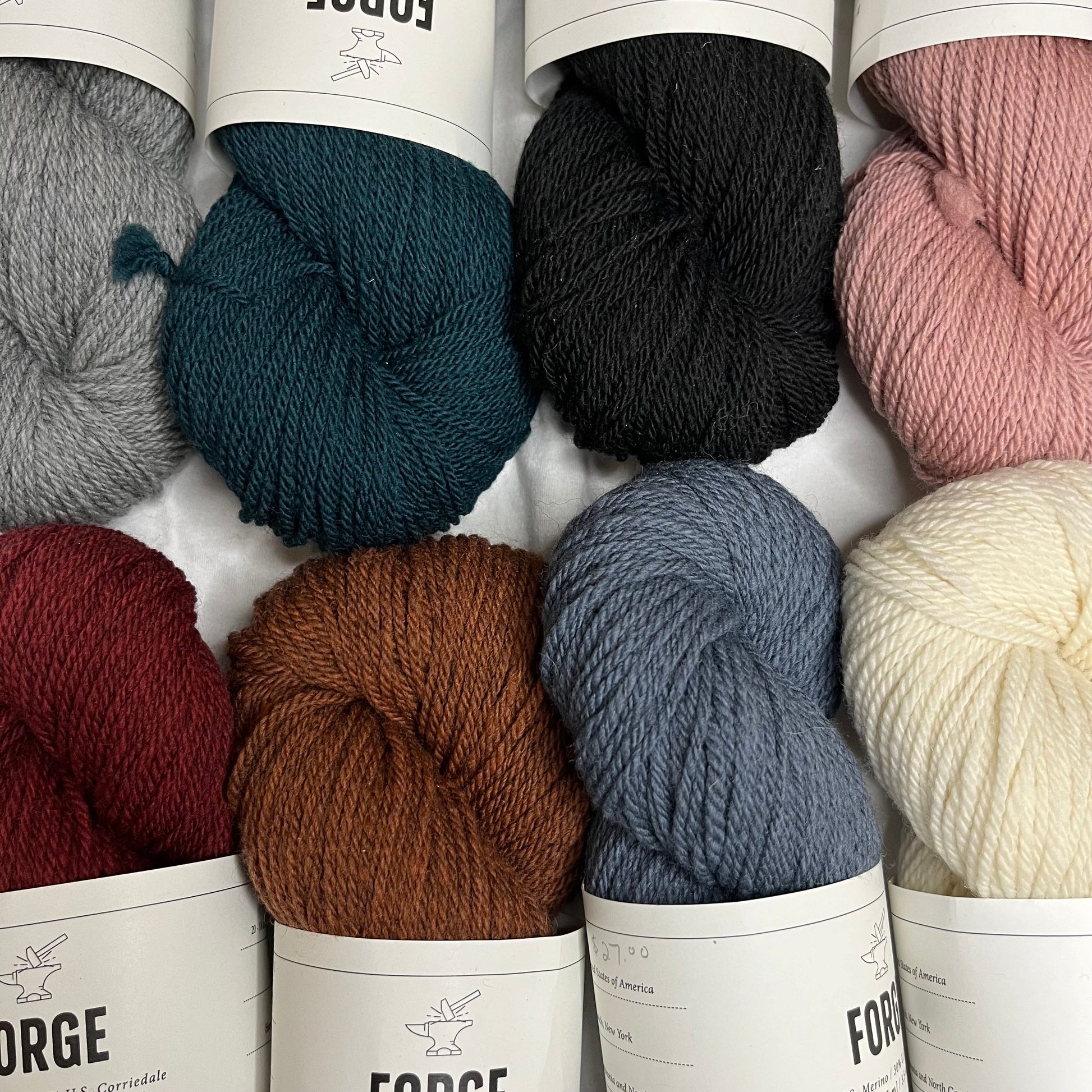 Forge is made from a heathered blend of 70% U.S. Merino (sourced in Colorado and New Mexico), and 30% U.S. Corriedale (sourced in New York) wool.