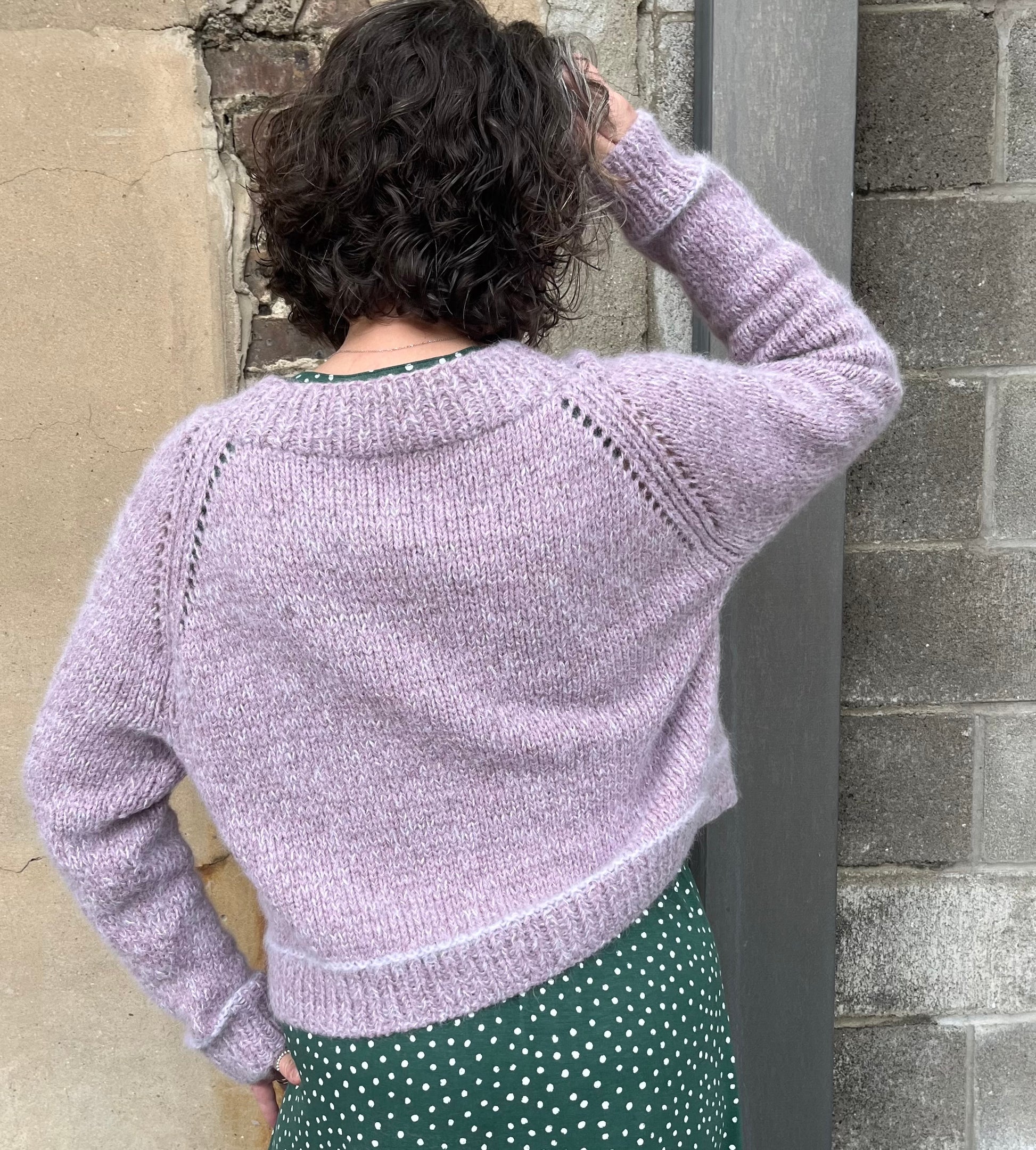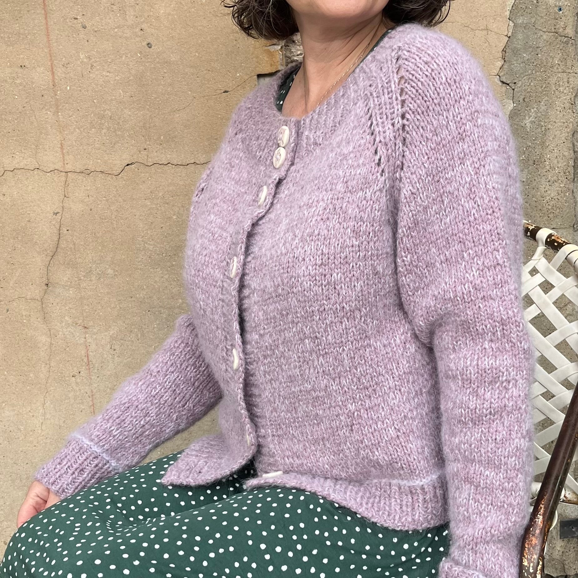 I used this pale lavender color held with Mota 207-G for 'The Perfect Cardigan'. Pattern is on Ravelry.
