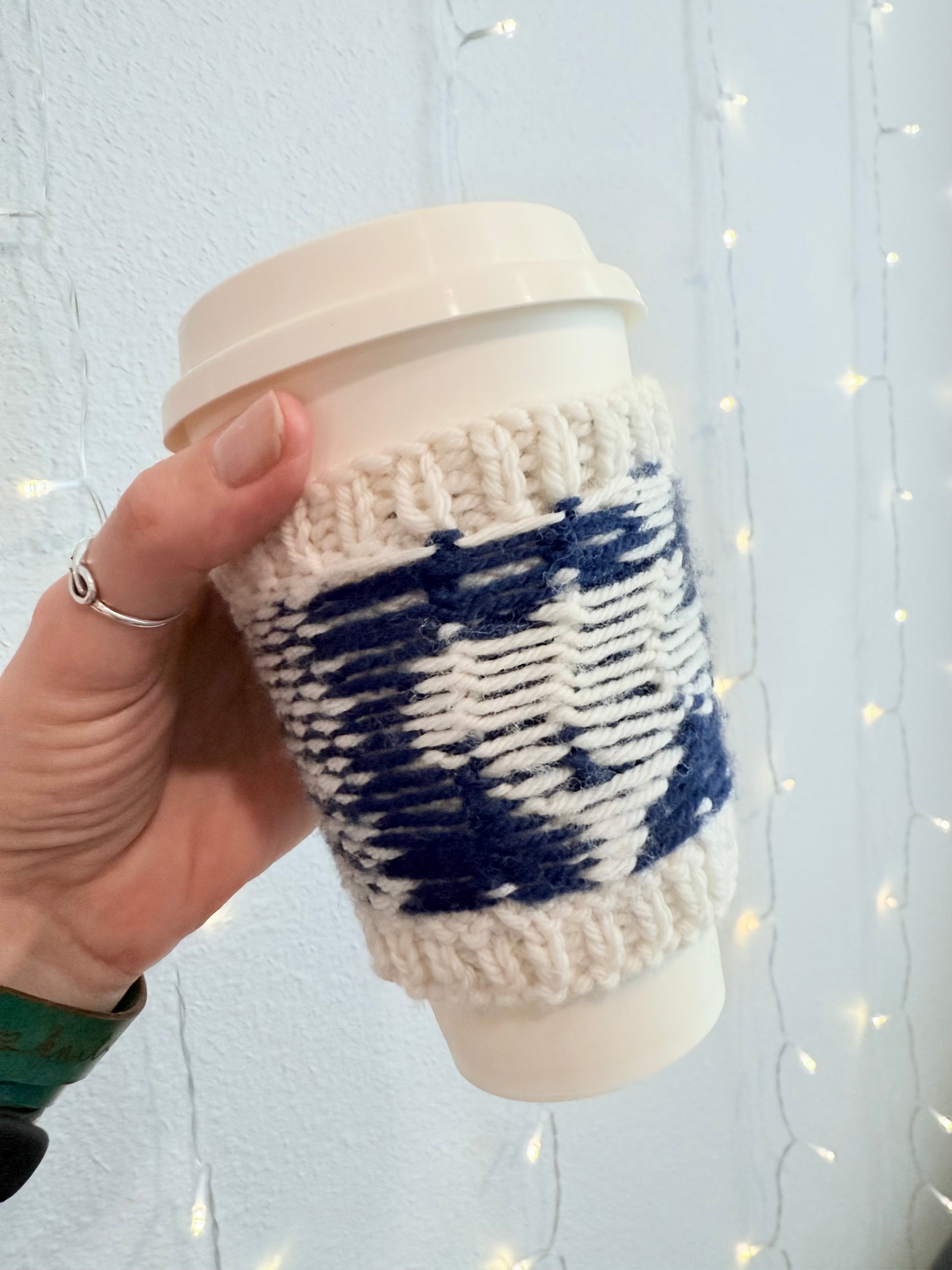 Prerequisites: Students should have some experience working with 2 colors and knitting small circumferences in the round. Instructions will be provided for finishing with a steek for the mug handle, but no previous experience is needed for that.